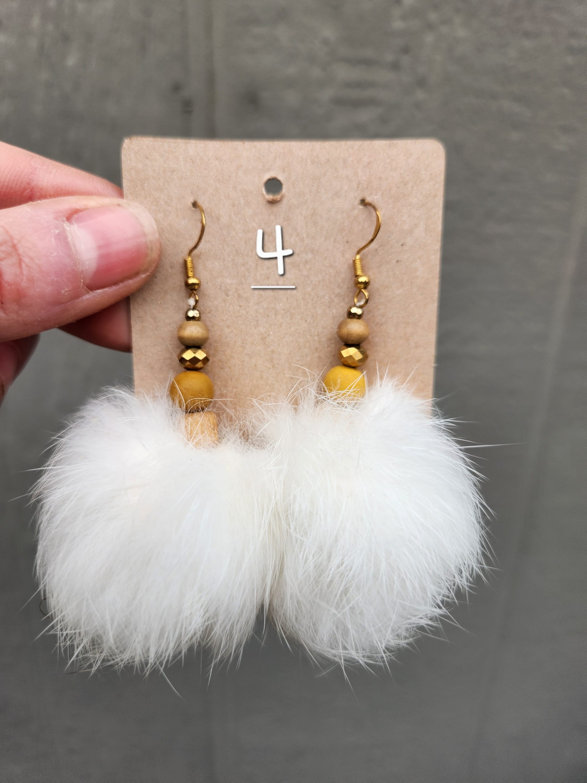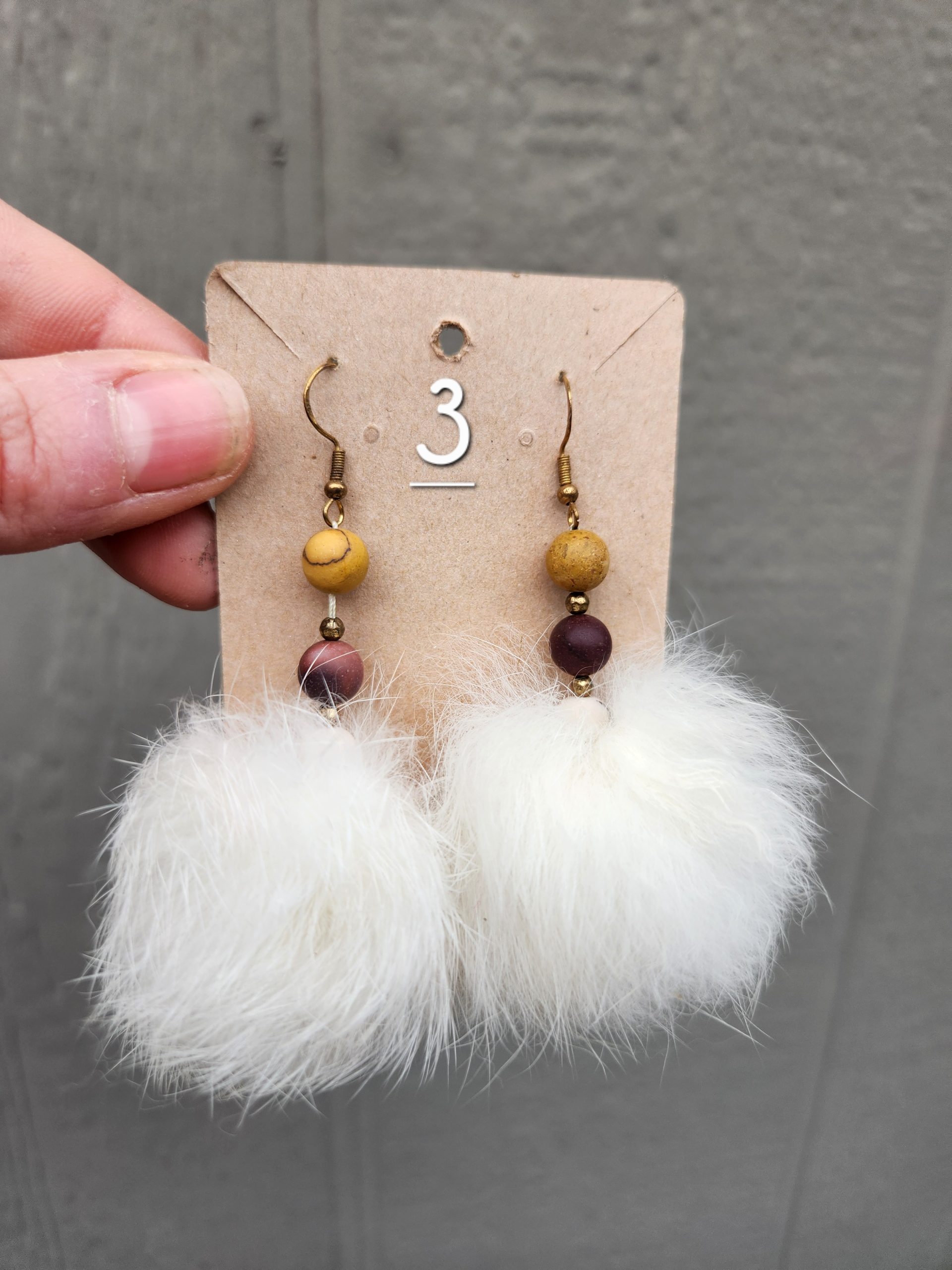 How fun are these? Real rabbit fur dangle pom pom earrings. The rabbits were lovingly raised on our homestead, their hides were meticulously tanned, and the pom poms were crafted by us. Each pair uses upcycled beads and because we don’t buy beads in bulk, only make one pair of each bead combination. They are truly one of a kind!
